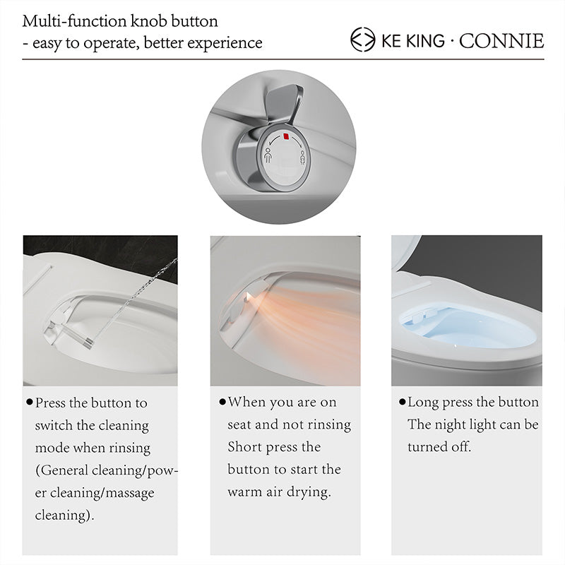 - Easy Installation & Use: Upgrade your bathroom in minutes with KE KING electric bidet, no plumber is required. One click to quick-release design, convenient to clean. Unlike others, the basic flushing function of Connie can still be used after power failure. You can also choose to unplug the power supply in summer to save energy.